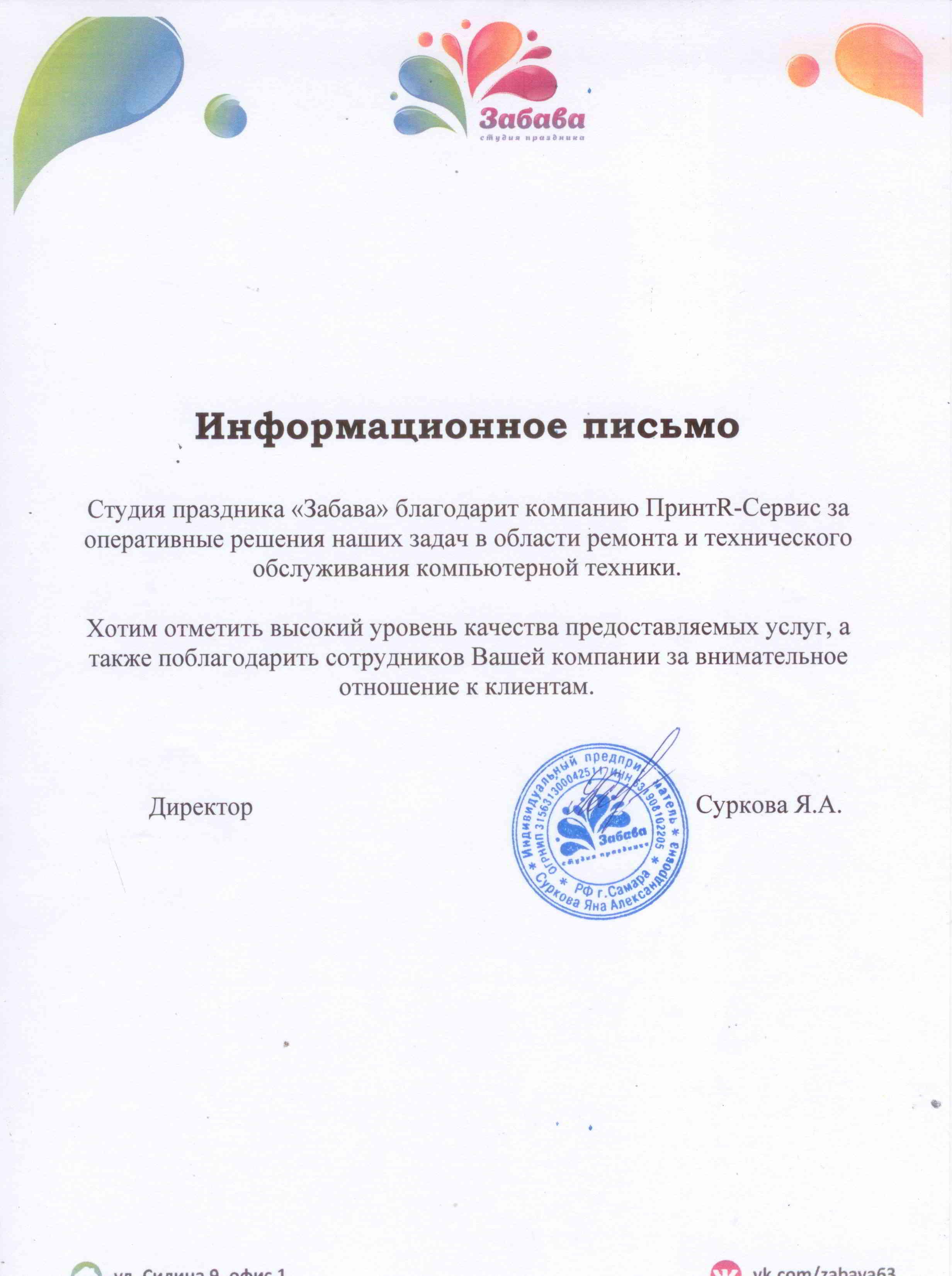 Профильным направлением деятельности компании ПринтR-Сервис является предоставление физическим и юридическим лицам в Самаре полного спектра услуг по обслуживанию оргтехники, заправке картриджей, ремонту ноутбуков и ПК а так же установке, настройке и поддержке ПО. Мы осуществляем работы любой сложности - от элементарной заправки картриджа до серьезного ремонта, связанного с поломкой дорогостоящего офисного принтера или МФУ. Работая с 2009 года в сфере услуг по данному направлению, компания ПринтR-Сервис сотрудничает только с проверенными поставщиками расходных материалов и комплектующих, тем самым достигая безупречного качества оказываемых услуг. Все работы производятся на профессиональном оборудовании фирмы «BAZTONE» квалифицированными специалистами с опытом работы более 9 лет. Наличие всех необходимых материалов и комплектующих «под рукой» позволяет выполнять работы по заправке картриджей в течении 10 минут, практически в Вашем присутствии. В случае обращения с «нестандартной» задачей, работы производятся сроком от 1 дня с момента обращения, это достигается за счет отлаженной работы с нашими поставщиками. Для юридических лиц есть возможность заключения договора на обслуживание. Оплата в форме безналичного расчета с получением всех необходимых сопутствующих документов. |